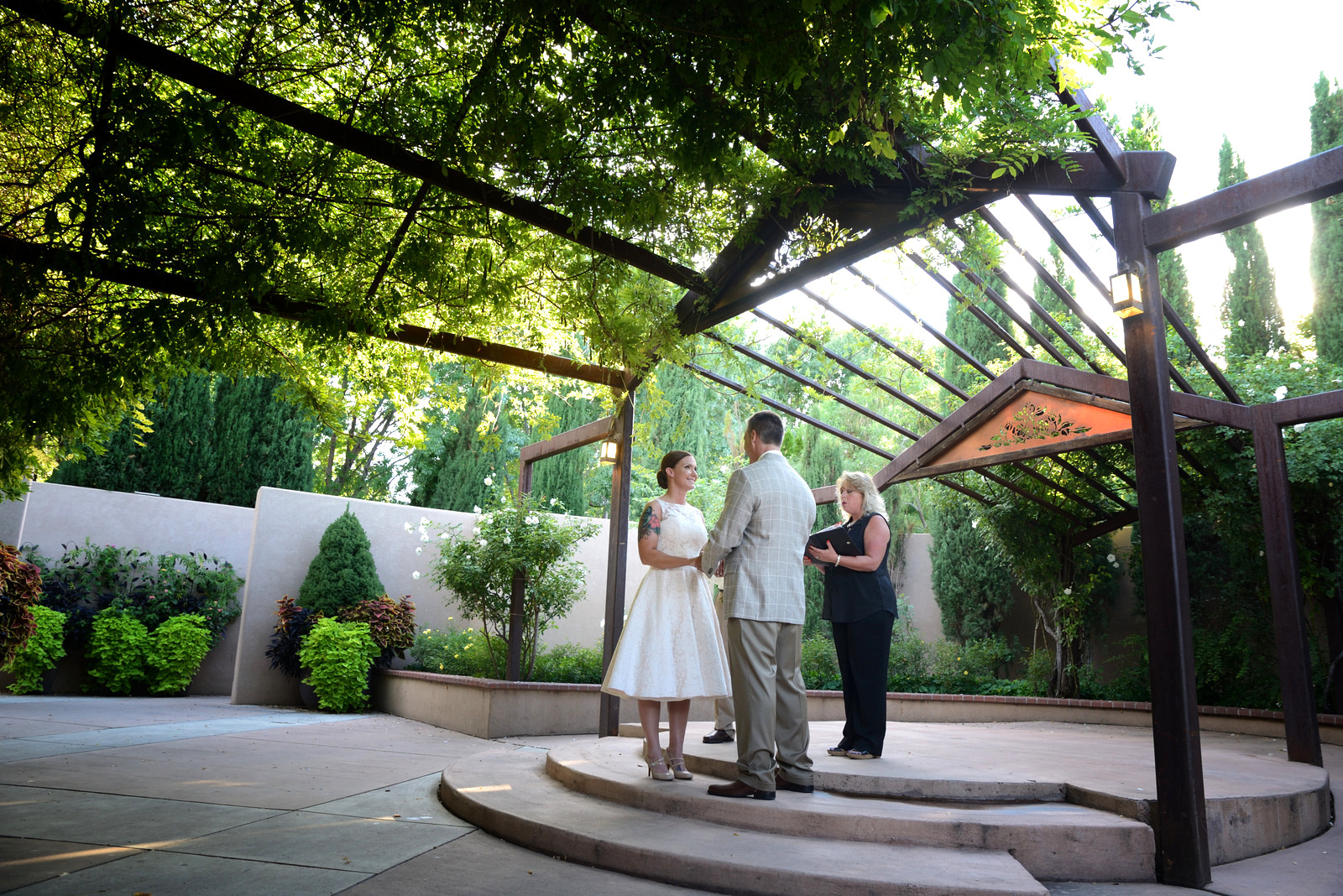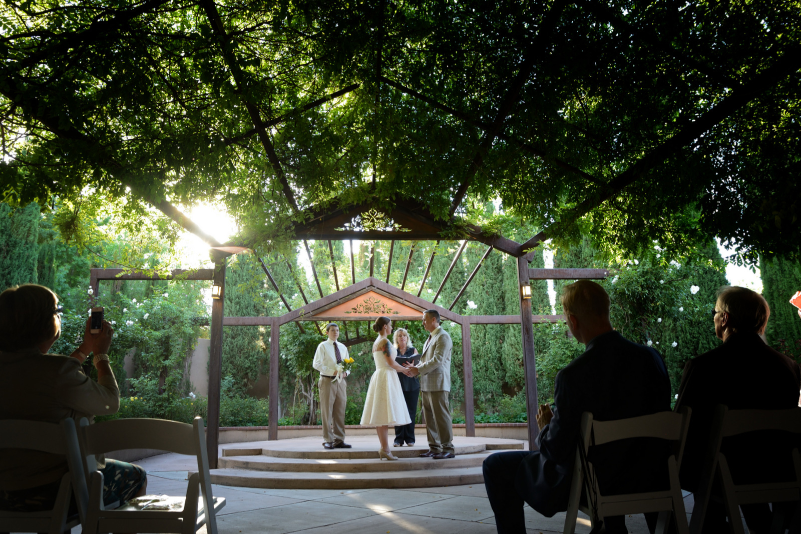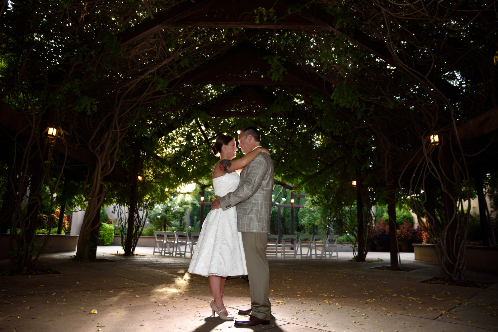 This was one of the shortest weddings I’ve ever photographed (about 1.5 hours) and was one of the most enjoyable. The wedding was held at Albuquerque’s beautiful Bio Park after hours. The guest list was small, and the ceremony was short, relaxed, and simple. The quiet and private environment made it easy to shoot and grab some photos of the Bride and Groom enjoying the moment and the excitement of their big day. 🙂