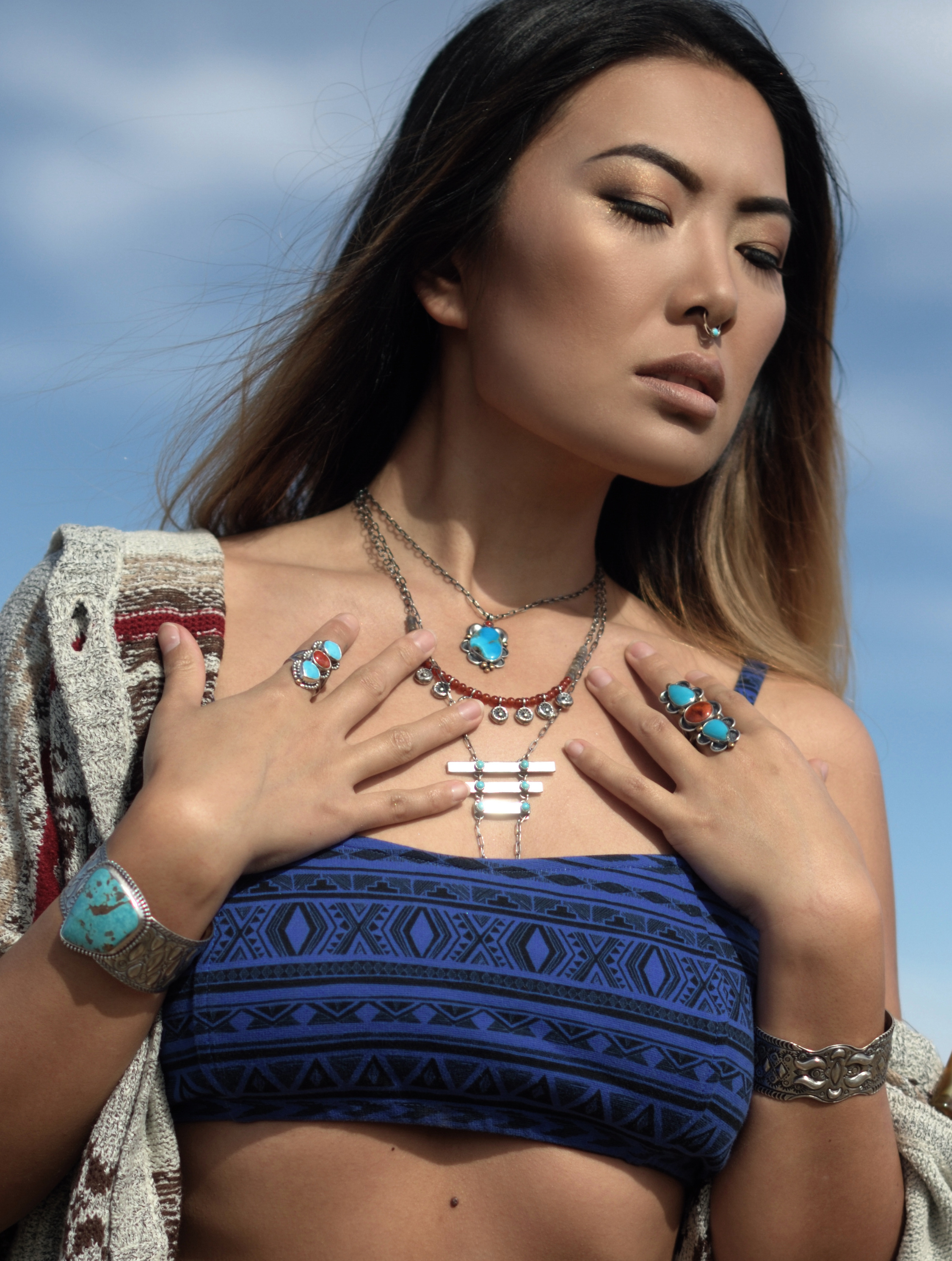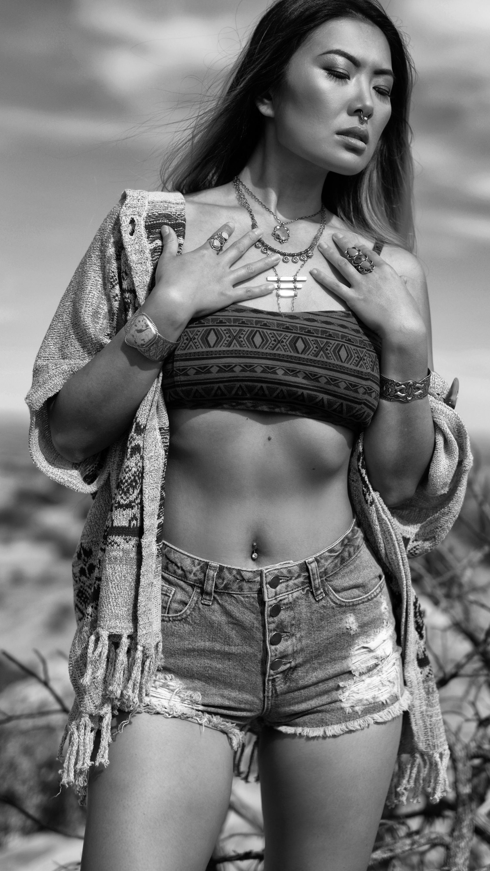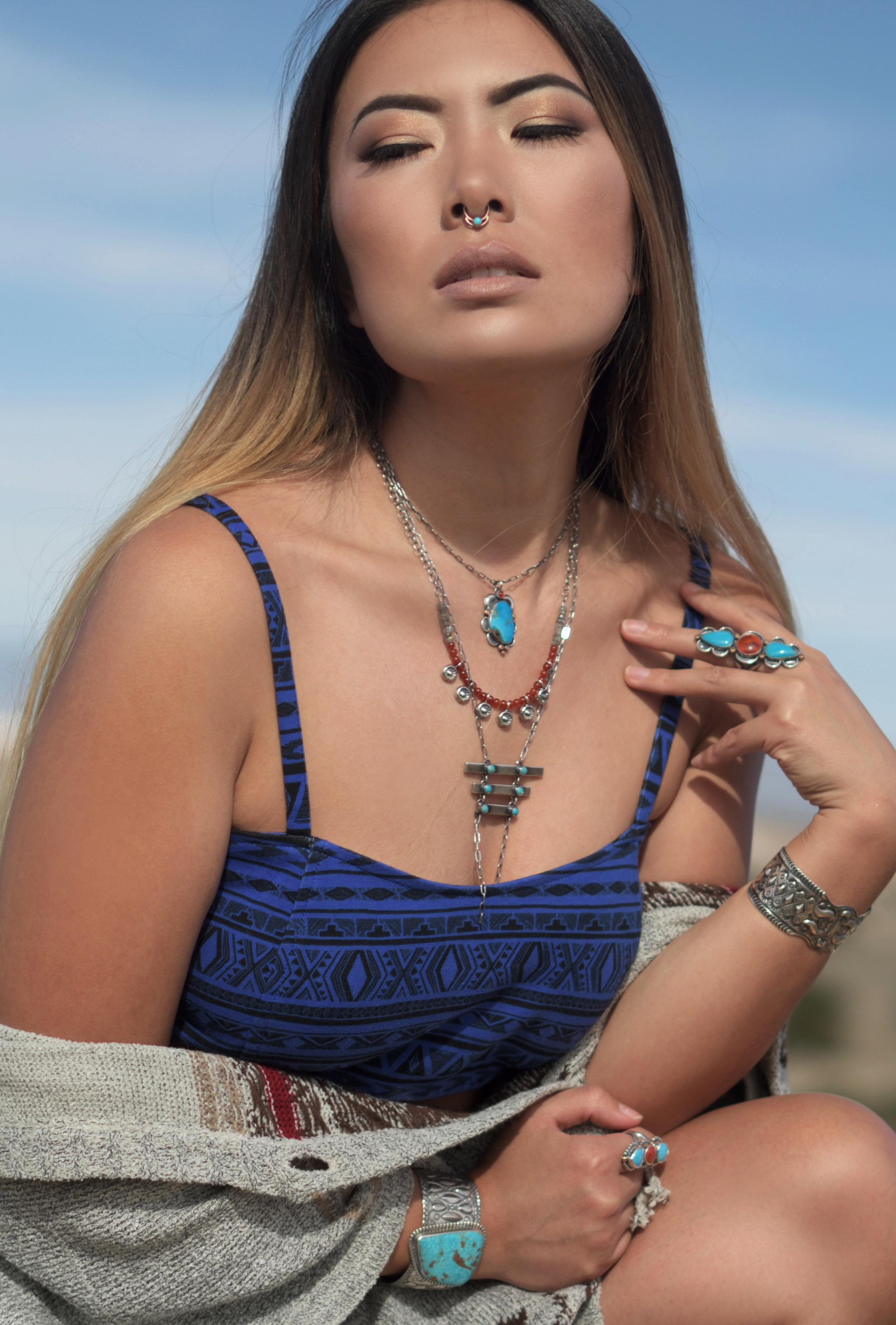 I recently had the pleasure of working with a few of New Mexico’s best local artists. I met up with Model Chow and makeup artist, Jacqueline Chavez. We hung out, talked, and finalized our plans for the shoot while Jacqueline did her magic on Chow. Previously, Chow had met with jeweler Lauren Tobey of Meltdown Studio to grab a few pieces of her beautifully hand crafted jewelry for us to use in a desert photo shoot. When Jacqueline completed Chows’s makeup, we loaded up and took an hour and a half drive west of Albuquerque, NM to take in the desert skies, the views and maybe a bit of adventure.