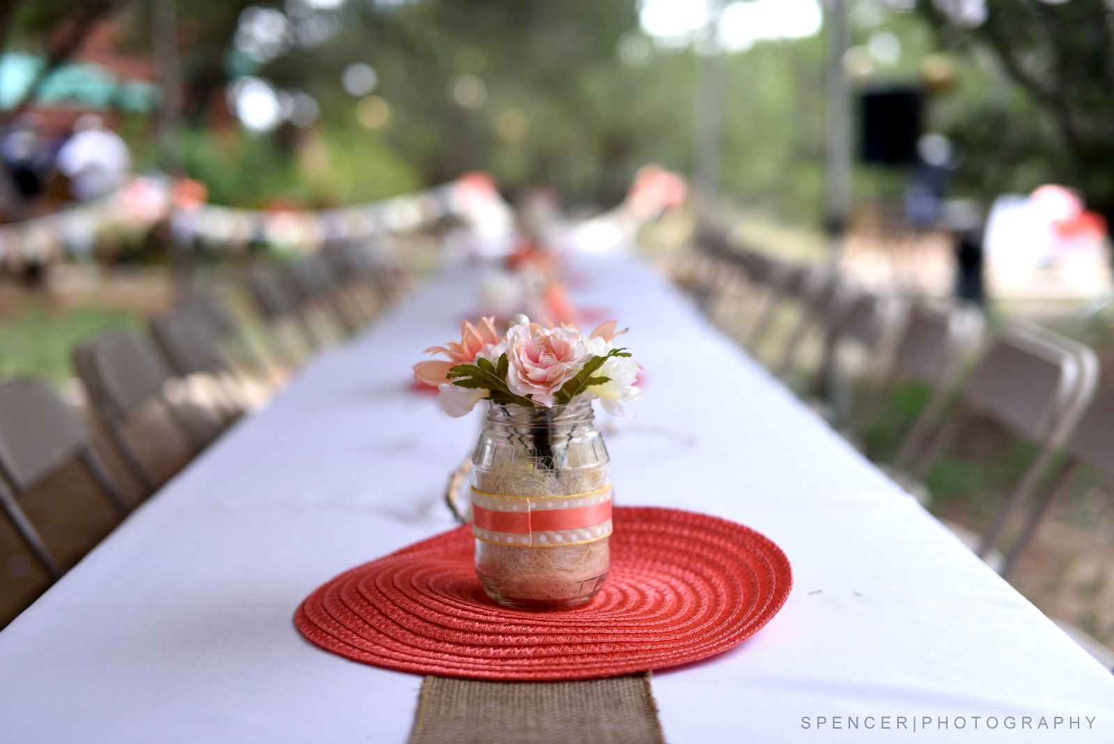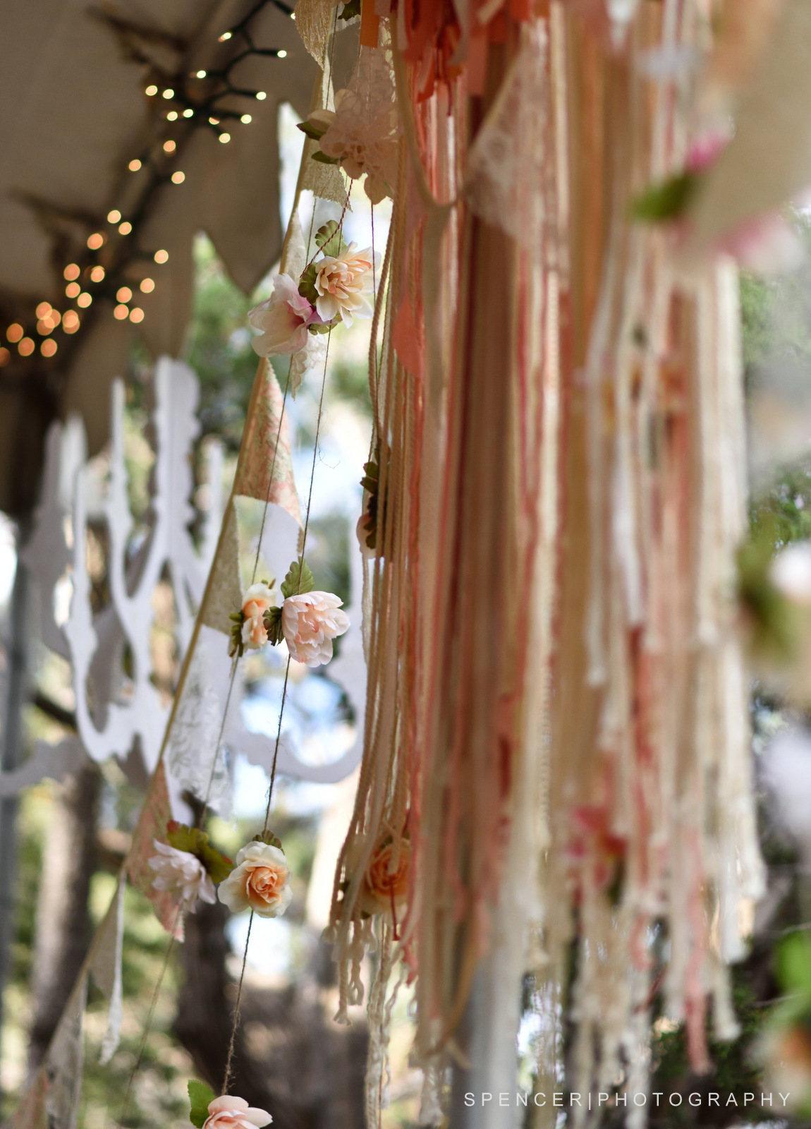A grass covered path, twisting and turning through the Aspen, Pine and Maple, decorated with white flowers and fallen leaves, guided guests to the “venue”.